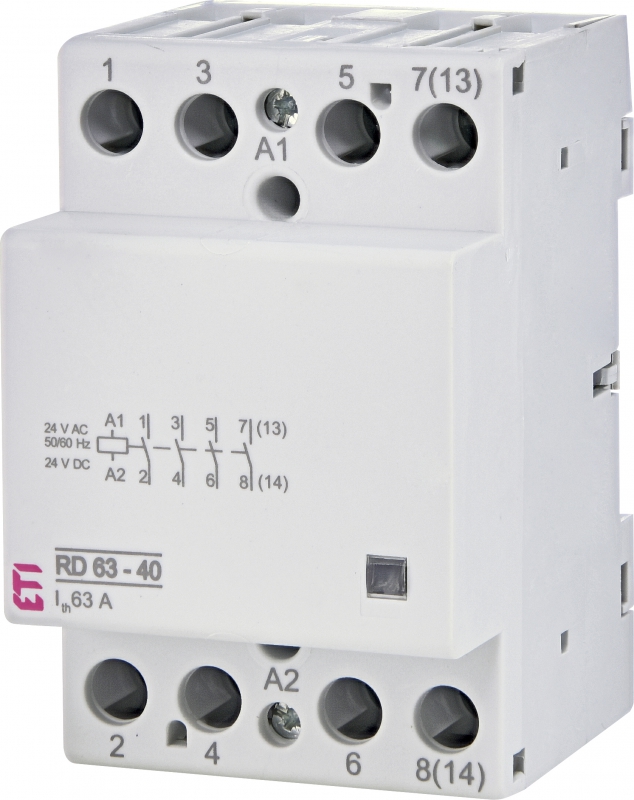 RD 63-40-24V AC/DC Stycznik modułowy 63A 4 styki zwierne (3 mod. 4 bieg.)