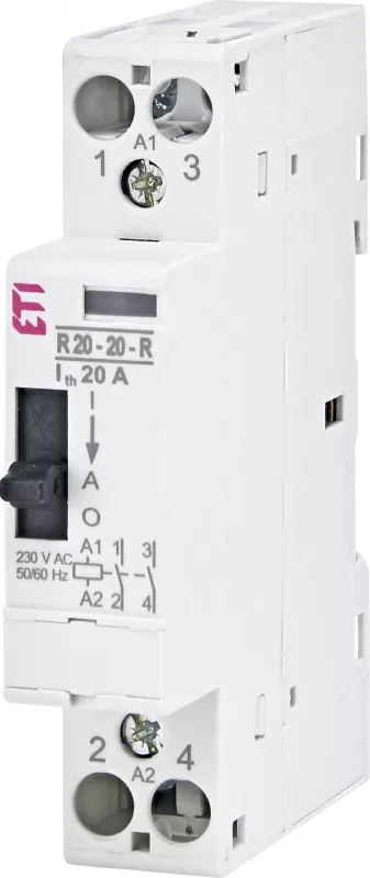 R 20-20-R-230V AC Stycznik modułowy ze sterowaniem ręcznym 20A 2 styki zwierne (1 mod. 2 bieg.)