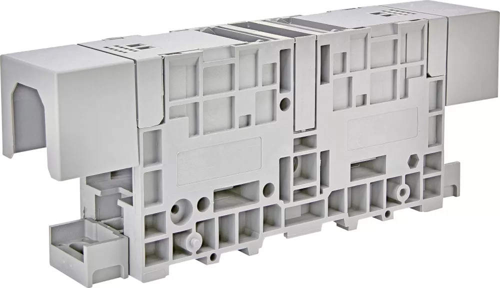 Złączka z osłonami zacisków przyłączeniowych, mocowanie na płytę