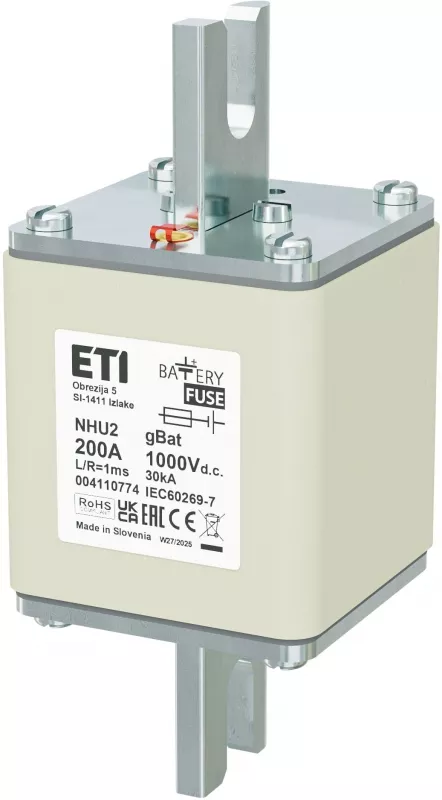 NHU2 gBat 200A/1000V DC Wkładka topikowa NH - do ochrony akumulatorów, magazynów energii / DC / Zaciski śrubowe "U"