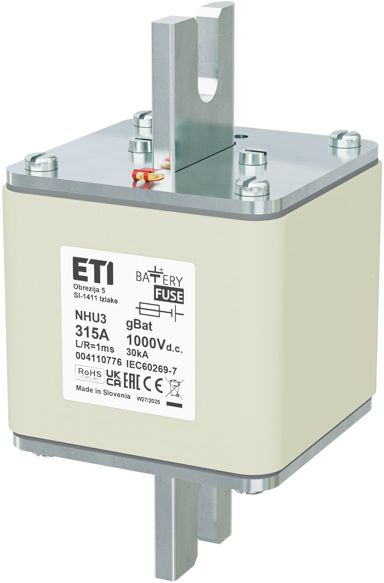 NHU3 gBat 315A/1000V DC Wkładka topikowa NH - do ochrony akumulatorów, magazynów energii / DC / Zaciski śrubowe "U"