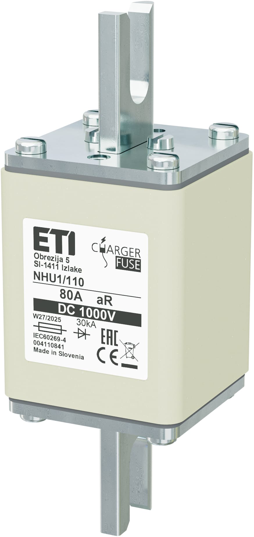 NHU1/110 aR 80A/1000V DC Wkładka topikowa NH - do ochrony ładowarek EV / DC / Zaciski śrubowe "U"