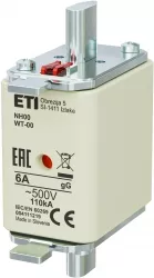 NH00 gG 6A/500V G Wkładka topikowa NH - zwłoczna / KOMBI / Pokrywy stalowe