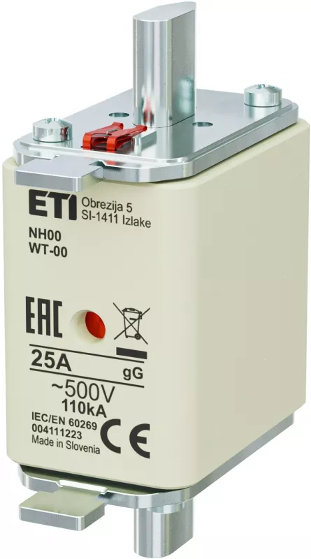 NH00 gG 25A/500V G Wkładka topikowa NH - zwłoczna / KOMBI / Pokrywy stalowe