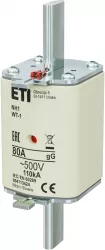 NH1 gG 80A/500V G Wkładka topikowa NH - zwłoczna / KOMBI / Pokrywy stalowe