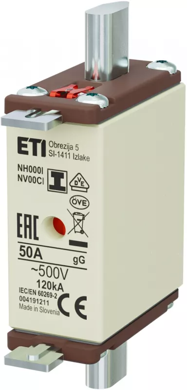 NH000/I gG 50A/500V Wkładka topikowa NH - zwłoczna / KOMBI / Zaczepy izolowane