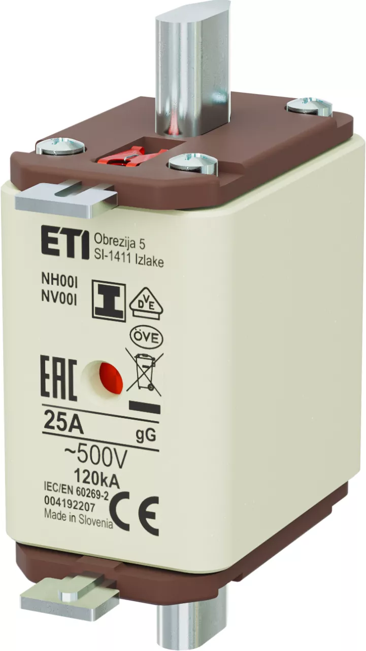 NH00/I gG 25A/500V Wkładka topikowa NH - zwłoczna / KOMBI / Zaczepy izolowane