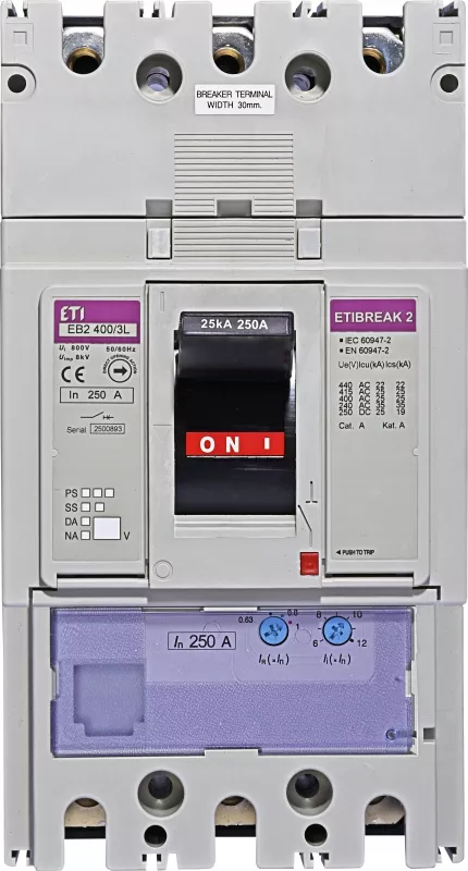 EB2 400/3L 250A 3p Wyłącznik mocy 3P, 25kA, wyzw. TM
