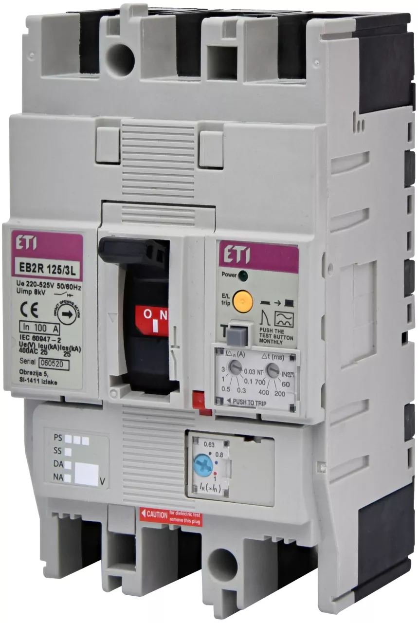 EB2R 125/3L 100A 3P Wyłącznik 3P, 25kA z blokiem różnicowoprądowym