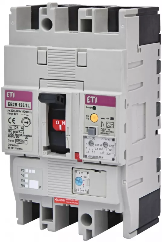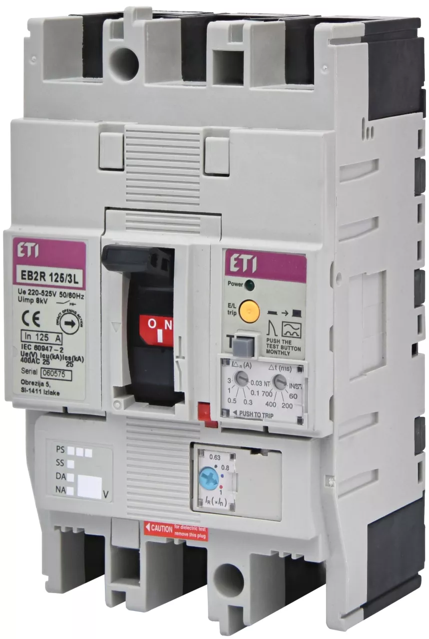 EB2R 125/3L 125A 3P Wyłącznik 3P, 25kA z blokiem różnicowoprądowym
