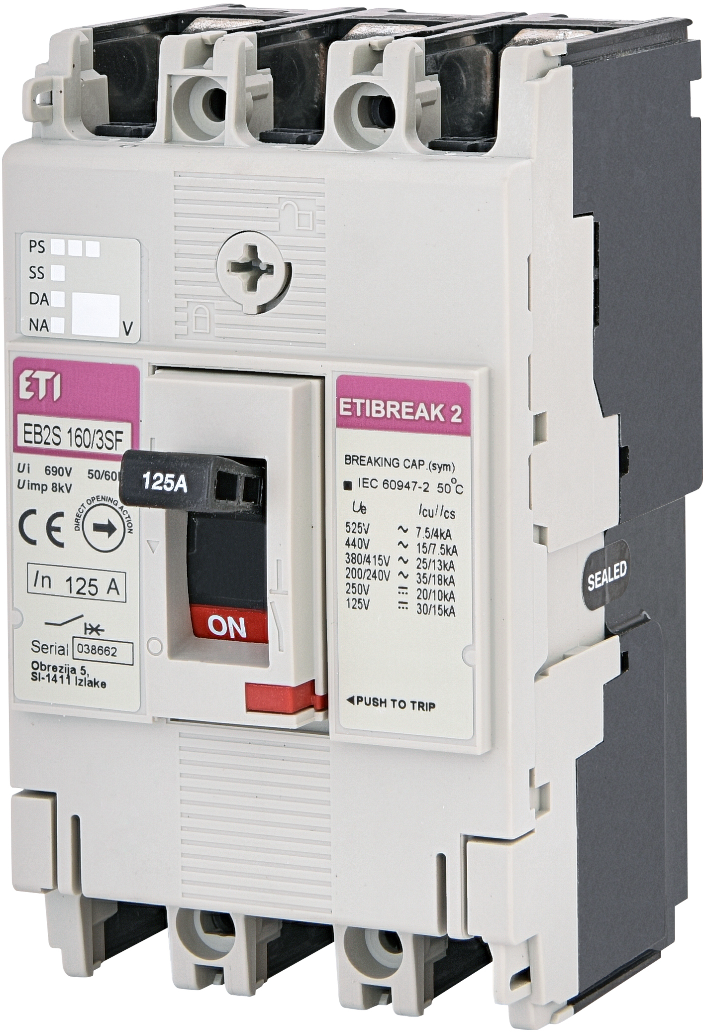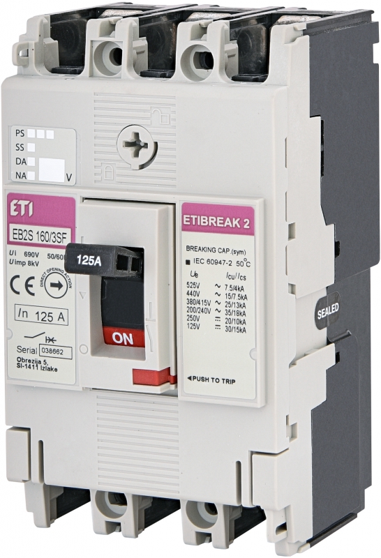 EB2S 160/3SF 125A 3p Wyłącznik mocy 3P, 25kA, wyzw. TM (bez regulacji)