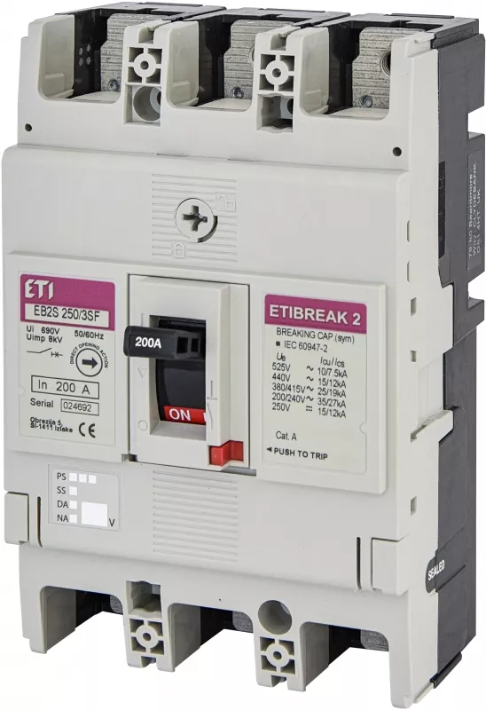 EB2S 250/3SF 200A 3p Wyłącznik mocy 3P, 25kA, wyzw. TM (bez regulacji)