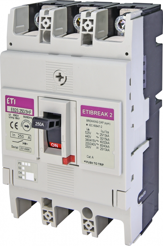 EB2S 250/3HF 250A 3p Wyłącznik mocy 3P, 40kA, wyzw. TM (bez regulacji)