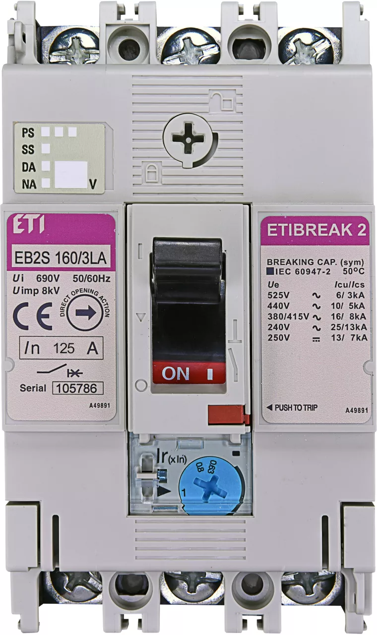 EB2S 160/3LA 125A 3p Wyłącznik mocy 3P, 16kA, wyzw. TM (regulacja termiczna)