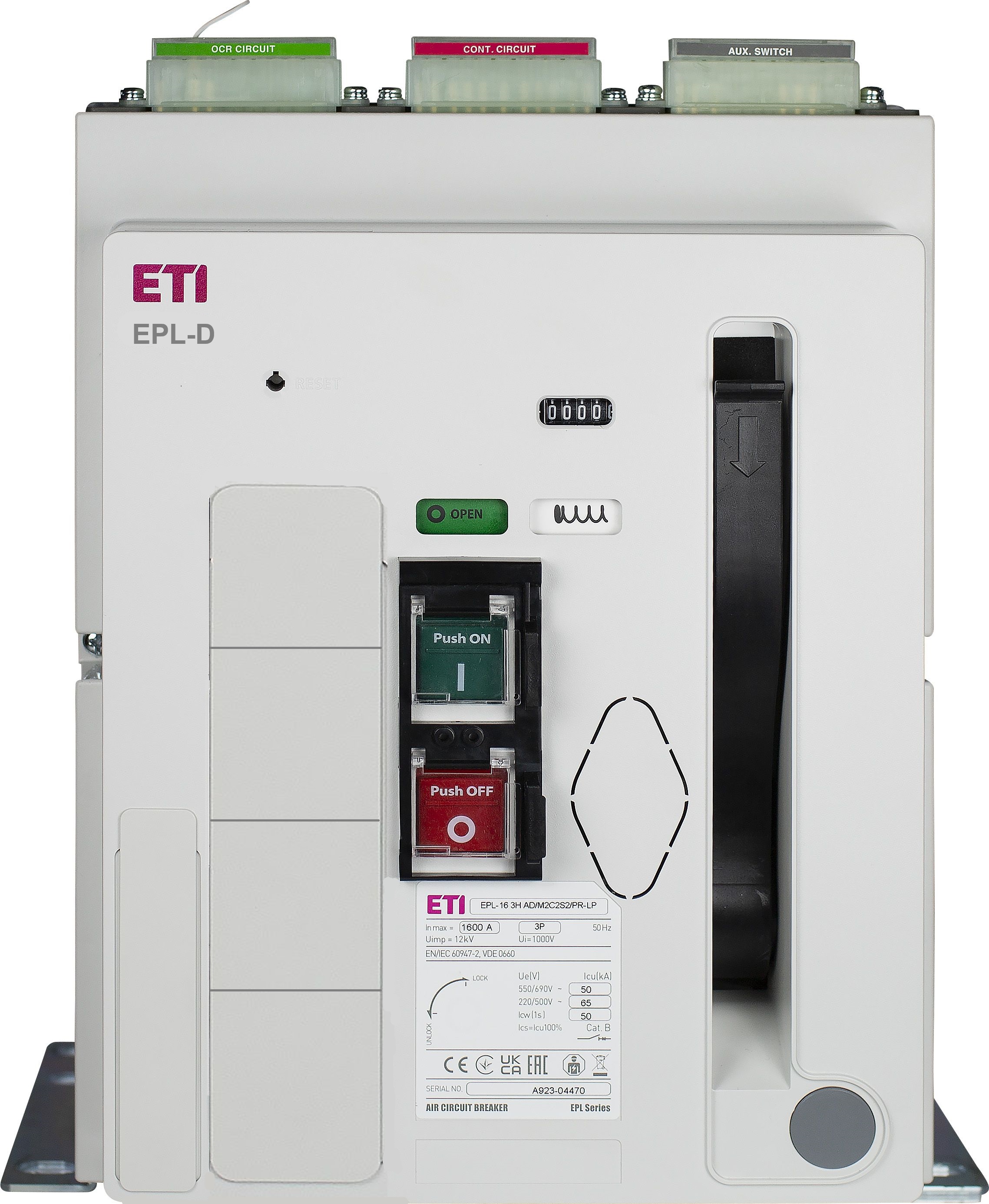 Wyposażenie dodatkowe: napęd silnikowy EPLH-M2U (AC/DC 220V), Cewka zamykająca EPLH-SS2 (AC/DC220V) wyzwalacz wzrostowy EPLH-S2 (AC/DC220V)