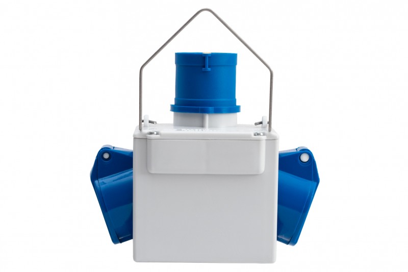 Adapter kempingowy wtyk 16A 3p, gniazdo 2x16A 3P - z uchwytem IP44