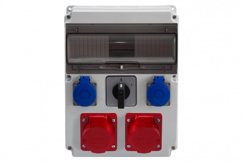 Rozdzielnica CAJA 12M - gniazda 2x16A 5p, 2x230V, 0/1 (32A) IP44