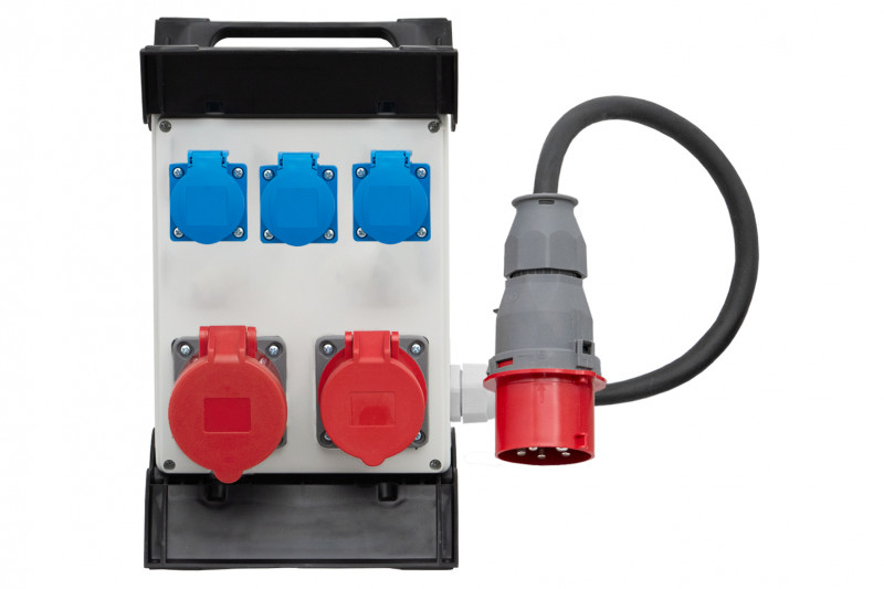 Rozdzielnica R-240 - gniazda 2x16A 5p, 3x230V, wtyczka 16A 5p, OW 5x2,5mm2 /1,5m/ , stelaż plastikowy IP44