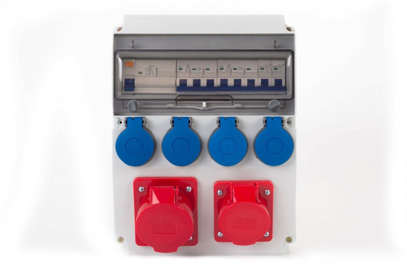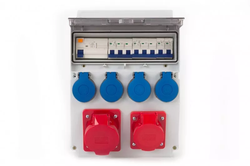 Rozdzielnica CAJA 12M - gniazda 16A 5p, 32A 5p, 4x230V z zabezpieczeniami R4P40A typ AC, 3FC32A, 3FC16A, 1FB16Ax2 FE IP44