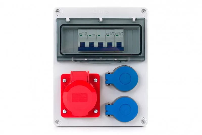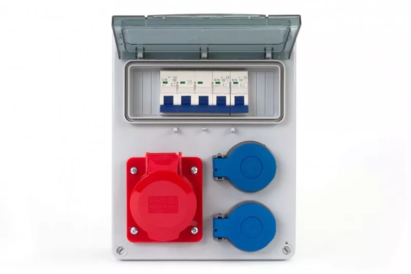 Rozdzielnica R-240 8M - gniazda 16A 5p, 2x230V z zabezpieczeniami 3FC16A, 1FB16Ax2 FE IP44