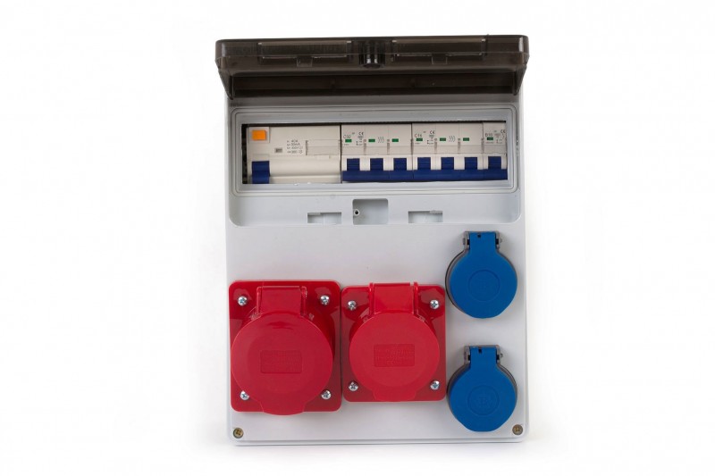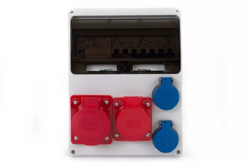 Rozdzielnica LAGO 11M - gniazda 16A 5p, 32A 5p, 2x230V z zabezpieczeniami R4P40A typ AC, 3FC32A, 3FC16A, 1FB16A FE IP44