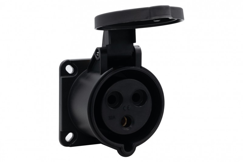 Gniazdo przemysłowe tablicowe proste 32A 3p czarne IP44