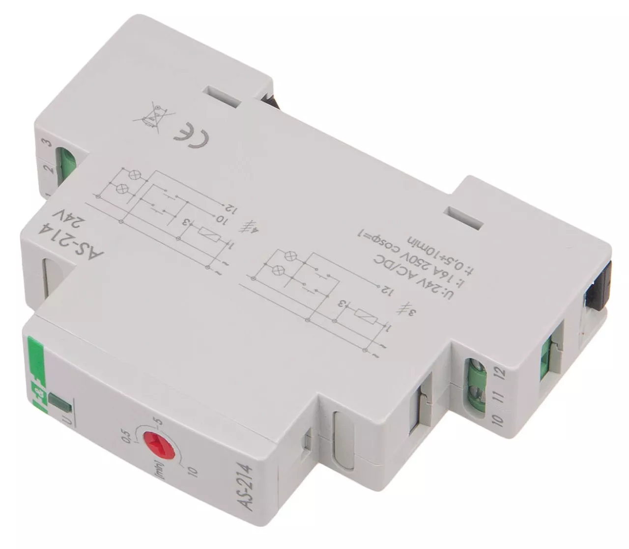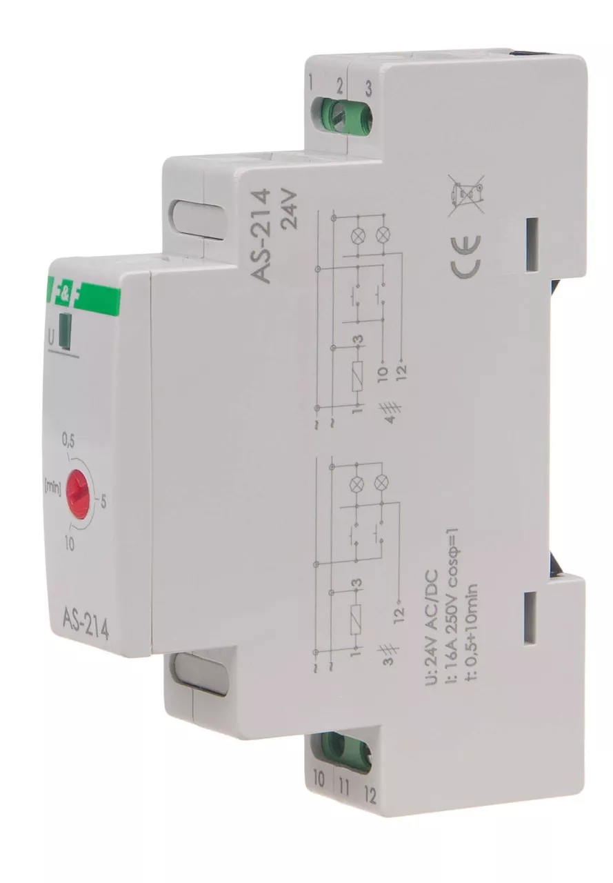 Napięcie zasilania 24 V AC/DC Maksymalny prąd obciążenia AC-1 16 A Element wykonawczy przekaźnik Konfiguracja styków 1 × NO Separacja styku NIE Opóźnienie zadziałania mniej niż 1 s Opóźnienie wyłączenia - regulowane 0,5 ÷ 10 min Przeciwblokada NIE Sygnalizacja wyłączenia NIE Współpraca z przyciskami podświetlanymi NIE Przyłącze zaciski śrubowe 2,5 mm² Moment dokręcający 0,4 Nm Pobór mocy 0,56 W Temperatura pracy -25 ÷ 50 °C Wymiary 1 moduł (18 mm) Montaż na szynie 35 mm Stopień ochrony IP20