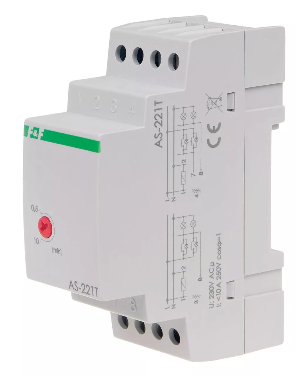 Automat schodowy z funkcją sygnalizacji wyłączenia oświetlenia, montaż DIN