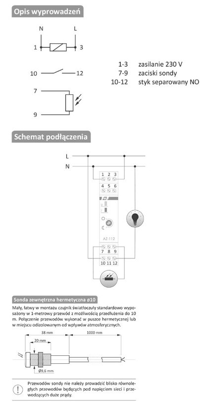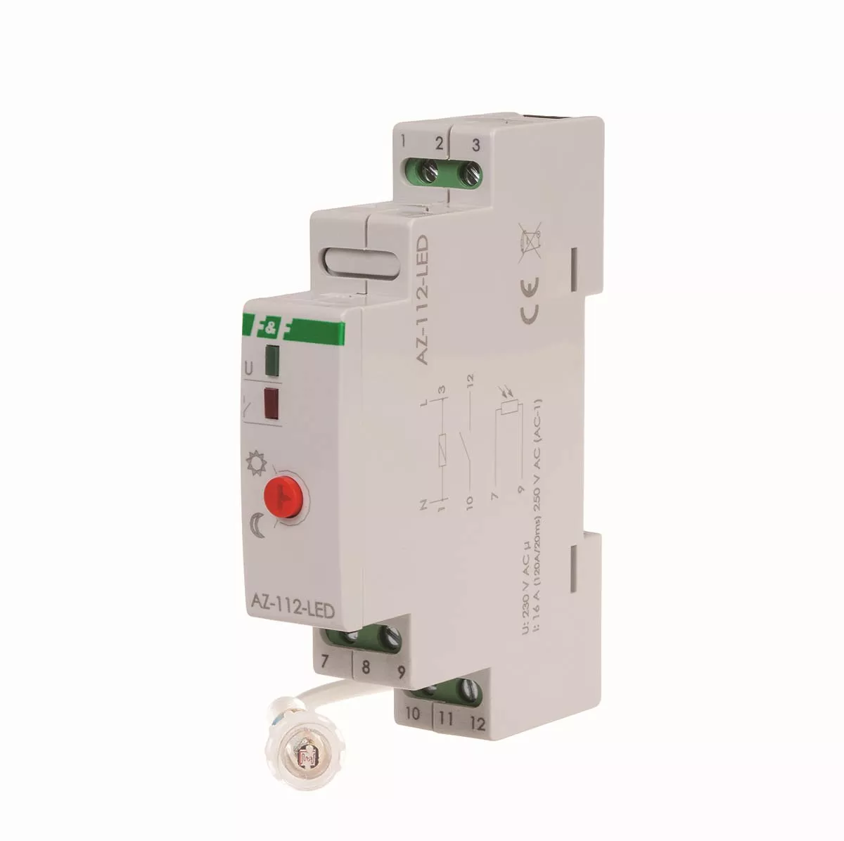 Automat zmierzchowy AZ-112-LED z zewnętrzną sondą, przekaźnik InRush16 A (160 A/20 ms)
