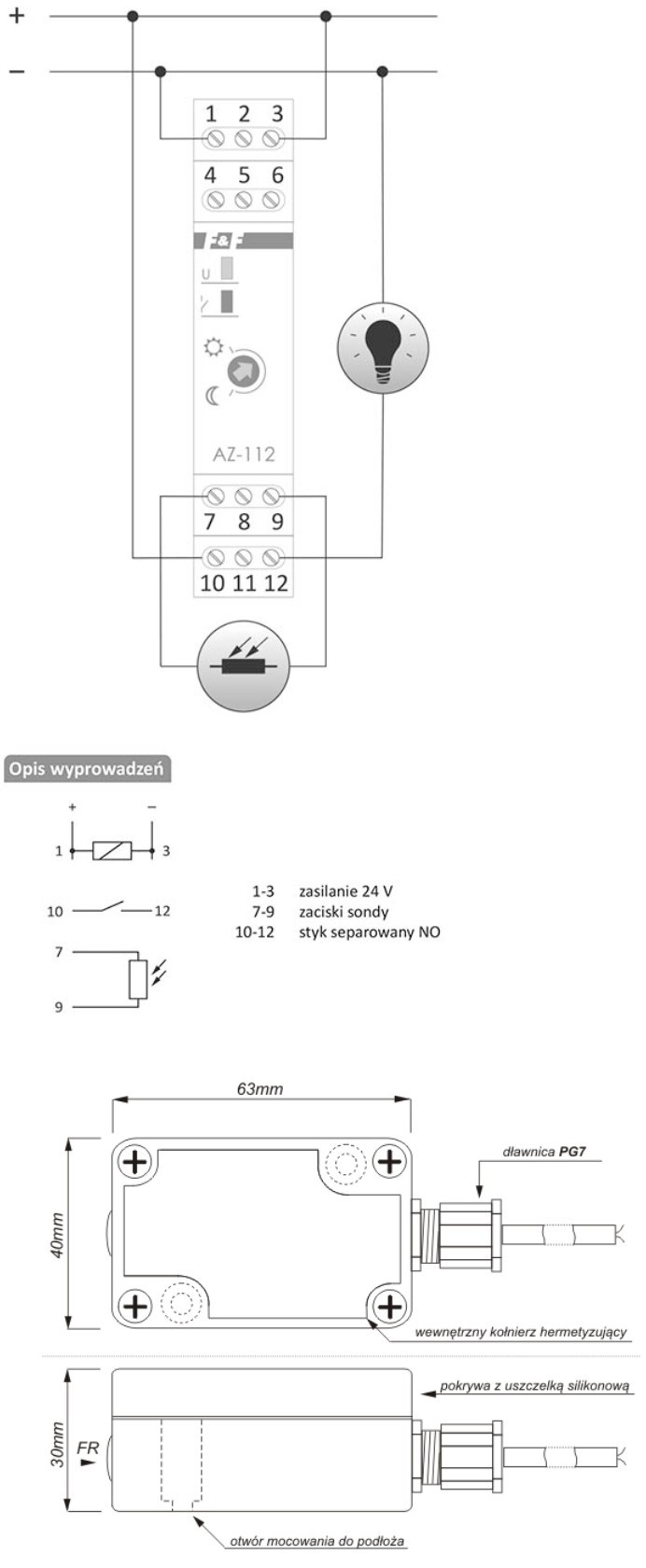Automat zmierzchowy z zewnętrzną sondą hermetyczną AZ-PLUS; 24V AZ-112-PLUS-24V