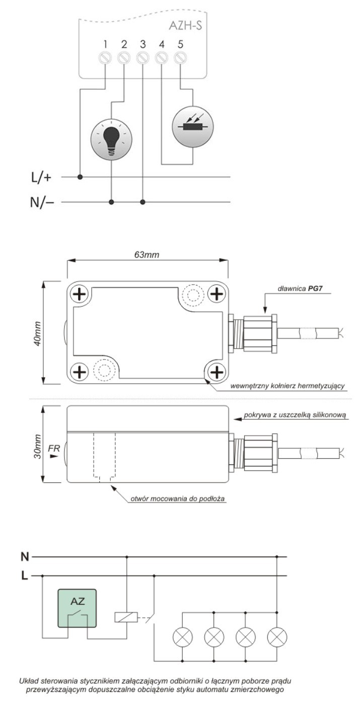 Automat zmierzchowy z zewnętrzną sondą hermetyczną AZ-PLUS; 24V AZH-S-PLUS-24V