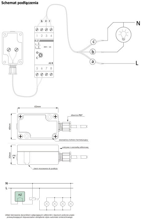 Automat zmierzchowy 16A U=12-264AC/DC, montaż na szynie DIN z sondą AZ-PLUS