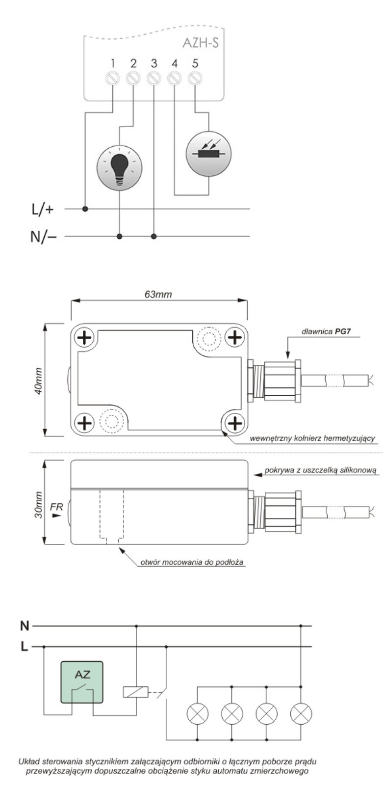 Automat zmierzchowy z zewnętrzną sondą hermetyczną AZ-PLUS; 12V