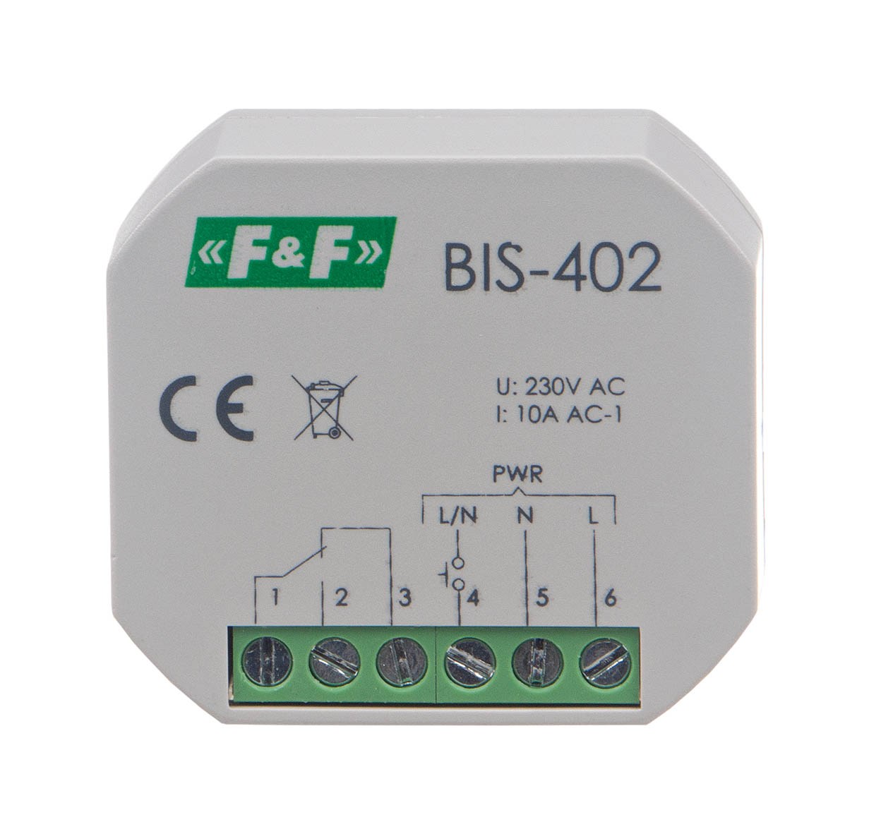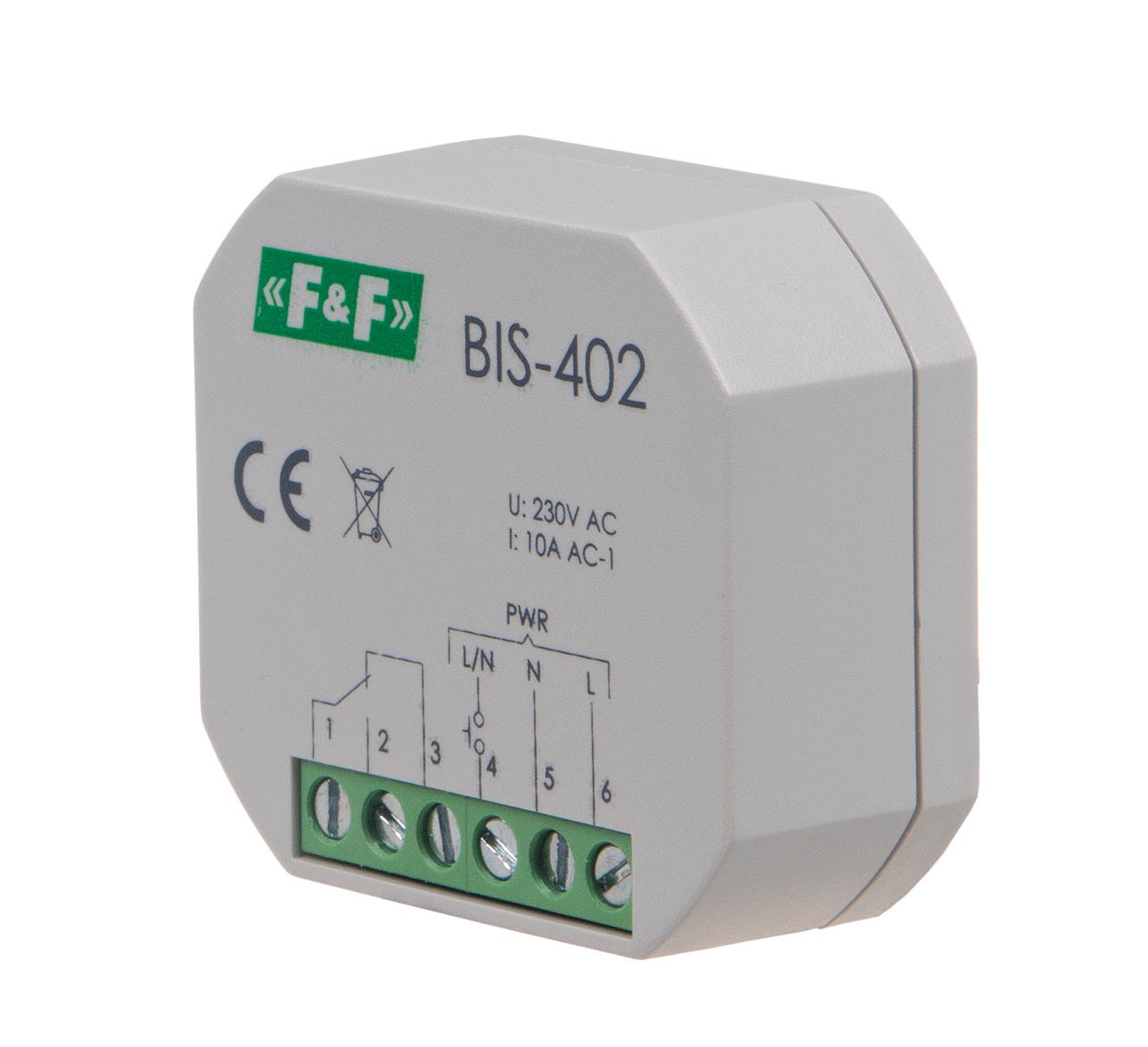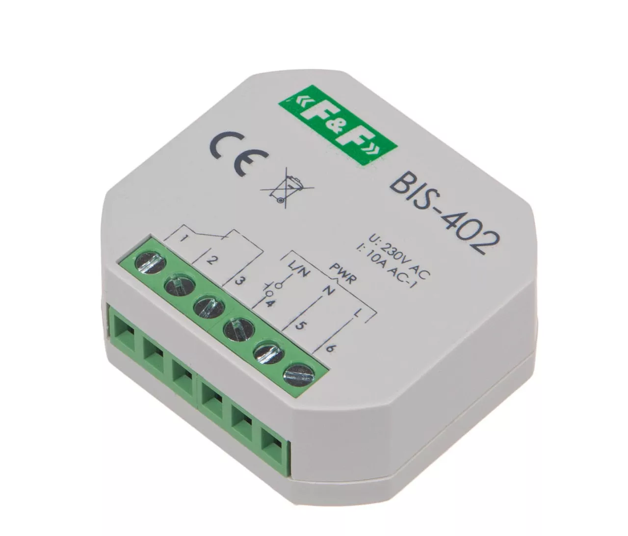 Napięcie zasilania 165÷265 V AC Sterowanie lokalne TAK Maksymalny prąd obciążenia AC-1 10 A Element wykonawczy przekaźnik Konfiguracja styków 1 × NO/NC Separacja styku TAK Odporność na prądy udarowe NIE Ilość kanałów 1 Funkcjonalność włącz/wyłącz Opóźnienie zadziałania 0,1 ÷ 0,2 s Prąd impulsu sterującego mniej niż 1 mA Współpraca z przyciskami podświetlanymi NIE Pamięć stanu po zaniku zasilania NIE Funkcja załącz na czas NIE Dedykowane wejścia sterowania centralnego NIE Sterowanie radiowe NIE Przyłącze zaciski śrubowe 2,5 mm² Moment dokręcający 0,4 Nm Pobór mocy 0,4 W Temperatura pracy -25 ÷ 50 °C Wymiary Ø54 (48×43 mm), wysokość: 20 mm Montaż w puszce podtynkowej Ø60 Stopień ochrony IP20