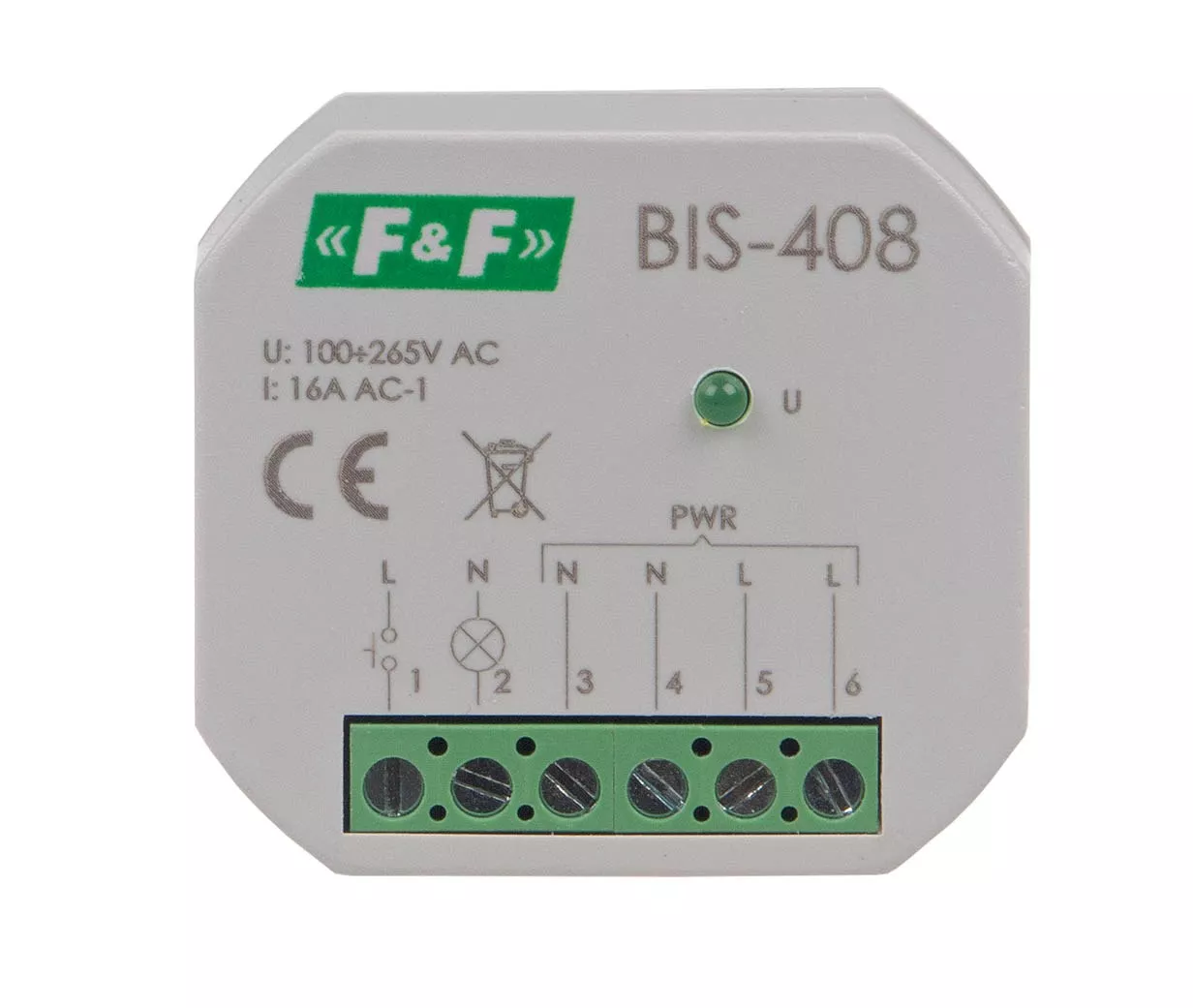 Przekaźnik bistabilny, podtynkowy, do podświetlanych przycisków, montaż podtynkowy