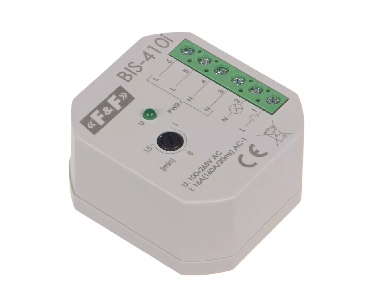 Przekaźnik bistabilny, podtynkowy z wyłącznikiem czasowym, do podświetlanych przycisków z przekaźnikiem inrush 160A/20ms