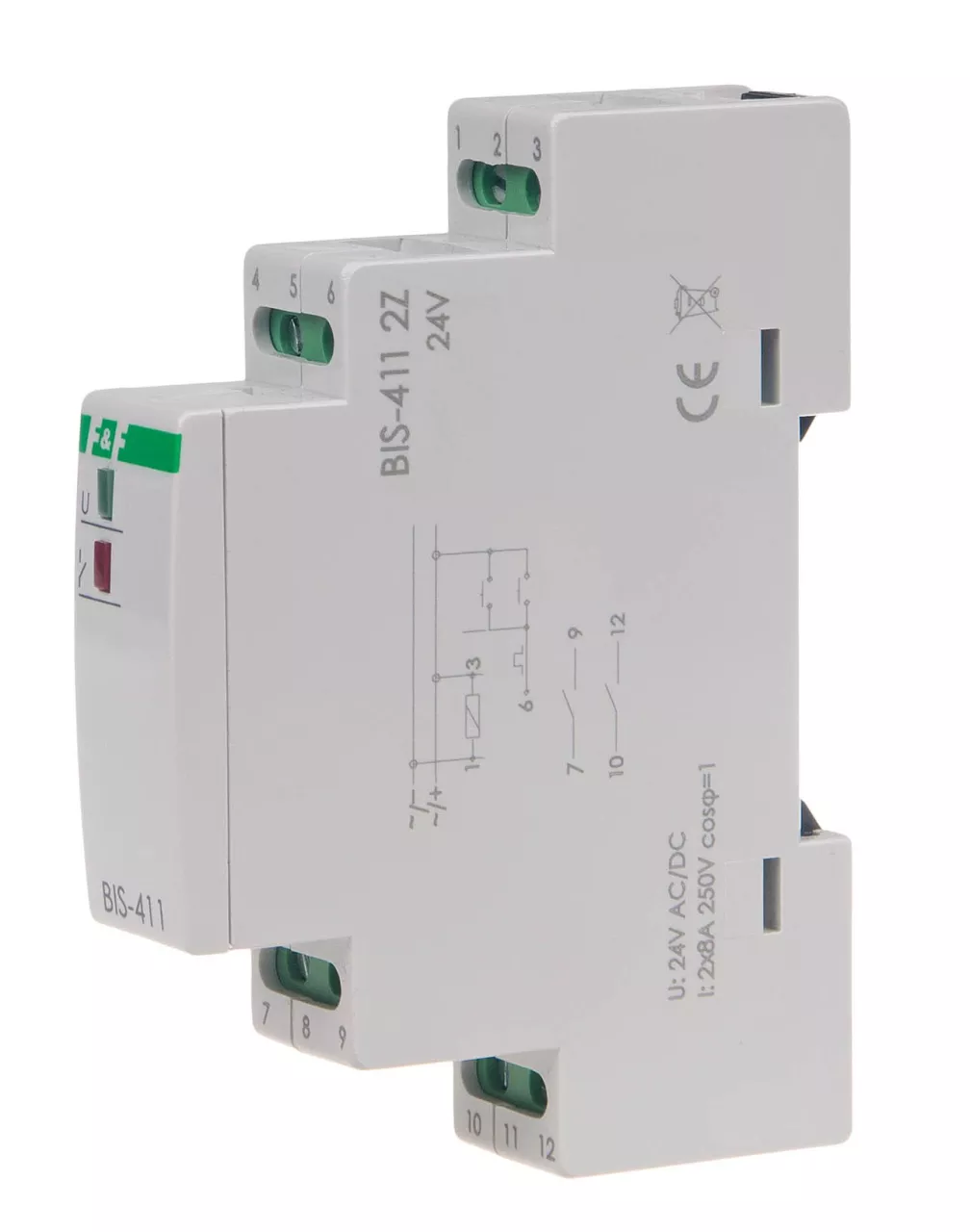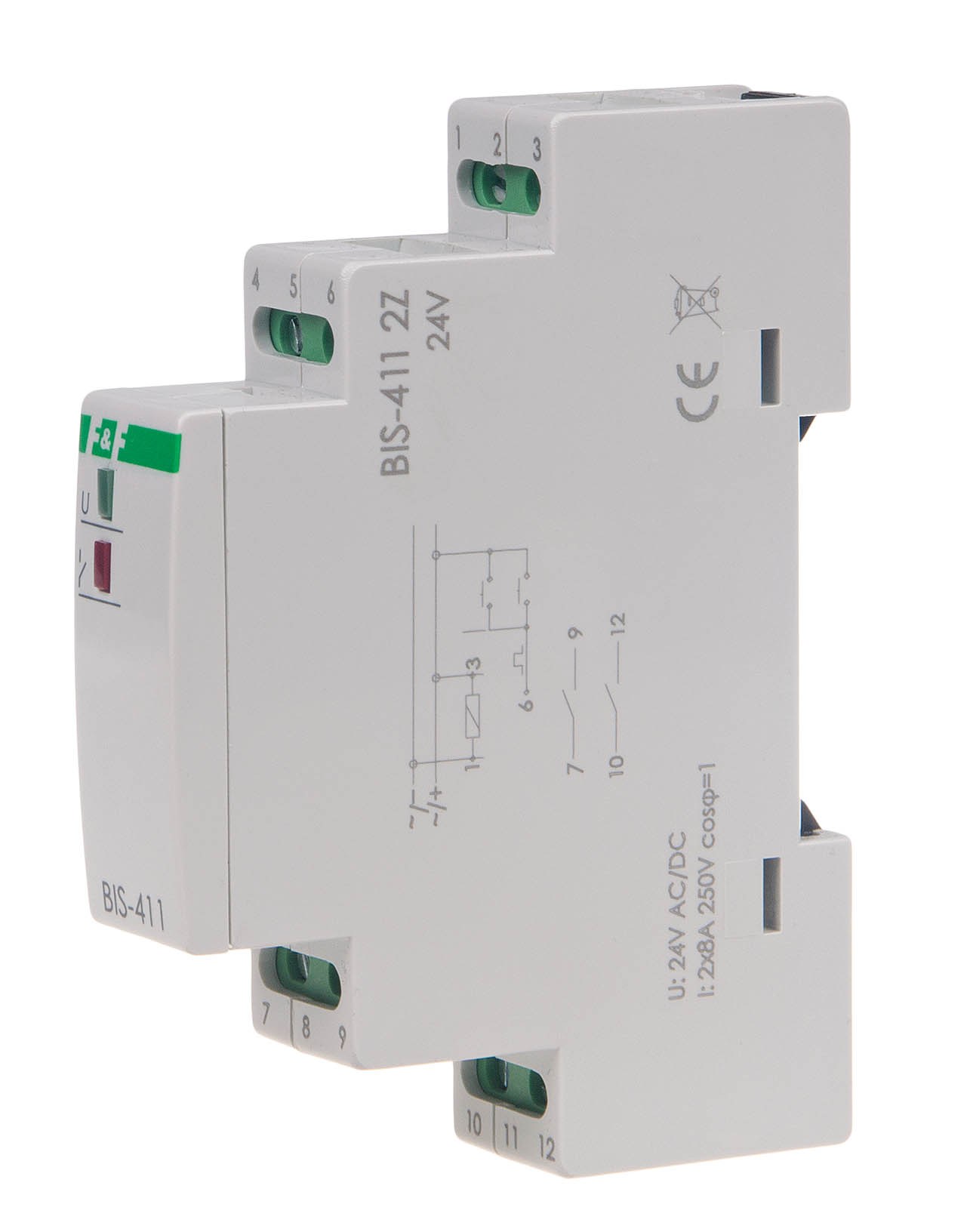 Przekaźnik bistabilny 9÷30 V AC/DC 2Z BIS-411 2Z 24V, montaż na szynie DIN