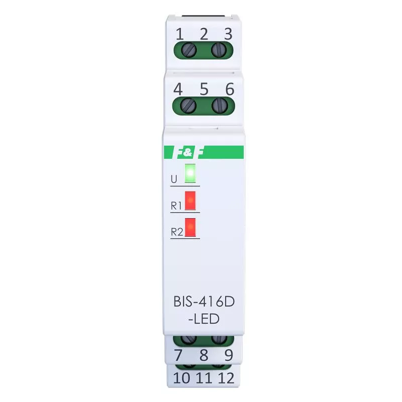 Zasilanie: 165÷265 V AC Max obciążenie: 2x10 A Montaż: na szynie 35 mm Elektroniczny, dwukanałowy przekaźnik bistabilny umożliwia załączenie oświetlenia lub innego urządzenia z kilku różnych punktów za pomocą równolegle połączonych przycisków sterujących. Dedykowany do sterowania obciążenia LED (120A/20ms)