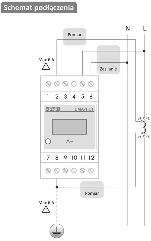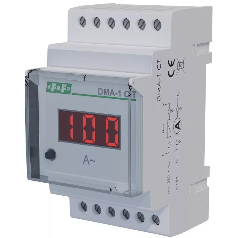 Cyfrowy wskaźnik wartości natężenia prądu, jednofazowy DMA-1-CT, pomiar półprośredni. Z programowalną przekładnią