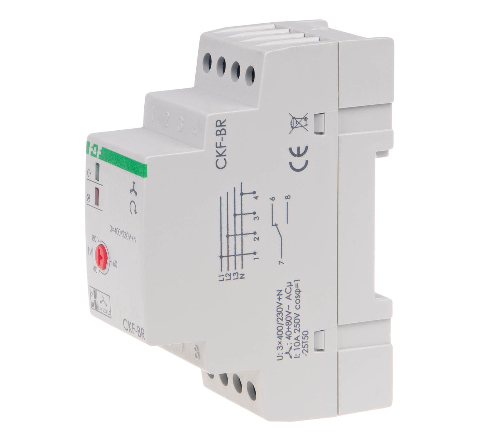 Czujnik kolejności i zaniku faz z regulowanym progiem asymetrii, montaż na szynie DIN CKF-BR