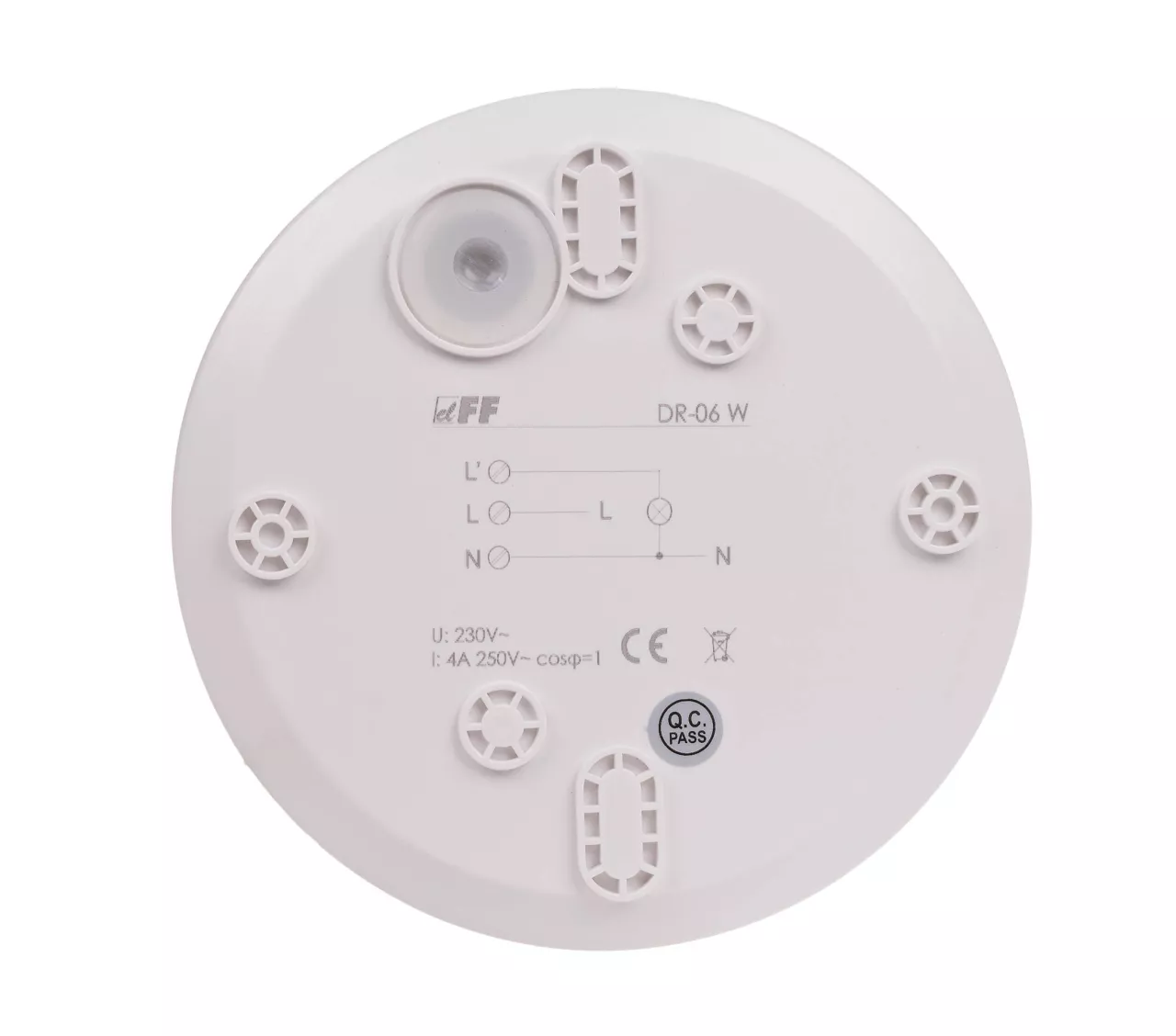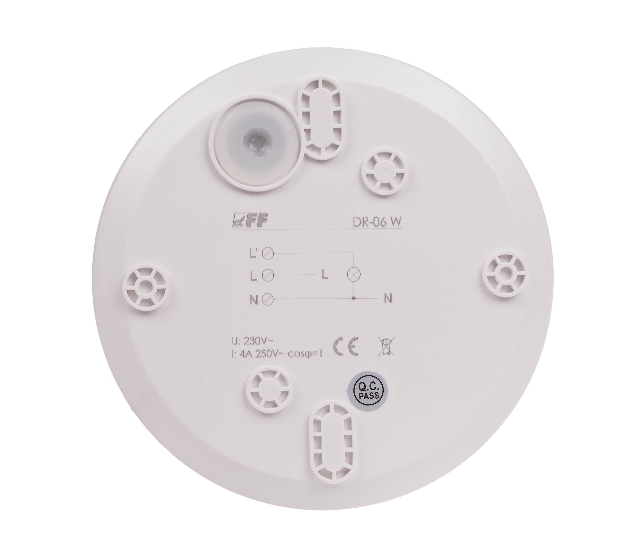 Napięcie zasilania 230 V AC Maksymalny prąd obciążenia AC-1 4 A Czas wyłączenia 3 s÷12 min. (±3 min.) Próg aktywacji zmierzchowej 10÷2000 Lx Detekcja ruchu 0,6÷1,5 m/s Pole detekcji poziomej 360° Maks. regulowany promień detekcji (h: 2.5 m, Temp. ˂ 24 °C) 5 m Wysokość montażu czujnika 2,5÷3,5 m Moc podłączona lampy żarowe 800 W Moc podłączona lampy świetlówkowe 400 W Rodzaj detekcji promieniowanie podczerwone Przyłącze zaciski śrubowe 1,0 mm² Moment dokręcający 0,25 Nm Pobór mocy czuwanie/praca 0,10 W/0,45 W Temperatura pracy -10÷40°C Wymiary Ø-115 mm, h-47 mm Montaż natynkowy Stopień ochrony IP40 Kolor Biały