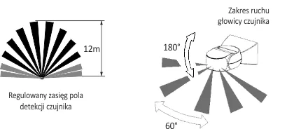 | Kąt detekcji w poziomie: | 0 - 180 ° |