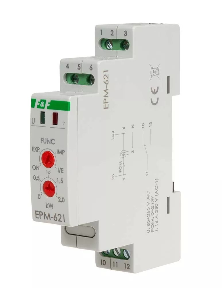 Napięcie zasilania 80÷265 V AC Element wykonawczy przekaźnik Maksymalny prąd obciążenia 16 A Konfiguracja styków 1 × NO/NC Separacja styku TAK Zakres pomiarowy 0÷2 kW Czas powrotu 1 s Histereza powrotu zasilania 5% Prąd obwodu mierzonego Im 16 A Czas zadziałania 1 s Przyłącze zaciski śrubowe 2,5 mm² Moment dokręcający 0,4 Nm Pobór mocy 0,8 W Temperatura pracy -25 ÷ 50 °C Wymiary 1 moduł (18 mm) Montaż na szynie 35 mm Stopień ochrony IP20