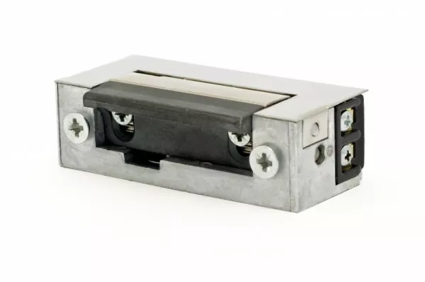 Elektrozaczep charakteryzuje się symetryczną budową, oraz regulowanym (do 3mm) zaczepem z proszku stali spiekanej, służy do zdalnego przewodowego otwierania drzwi, szafek lub furtek. Zasilany prądem zmiennym (wersja AC), lub prądem stałym (DC) Najważniejsze cechy: trudnościeralne elementy ze stali spiekanej montaż w drzwiach lewych lub prawych Dodatkowo elektrozaczepy mogą być wyposażone w diodę niwelującą przepięcia FUNKCJE: Rygiel symetryczny Może być zastosowany zarówno do drzwi lewych jak i prawych Zasilanie: DC 12V Pobór prądu: 260 mA Wymiary: 67x29x21 mm
