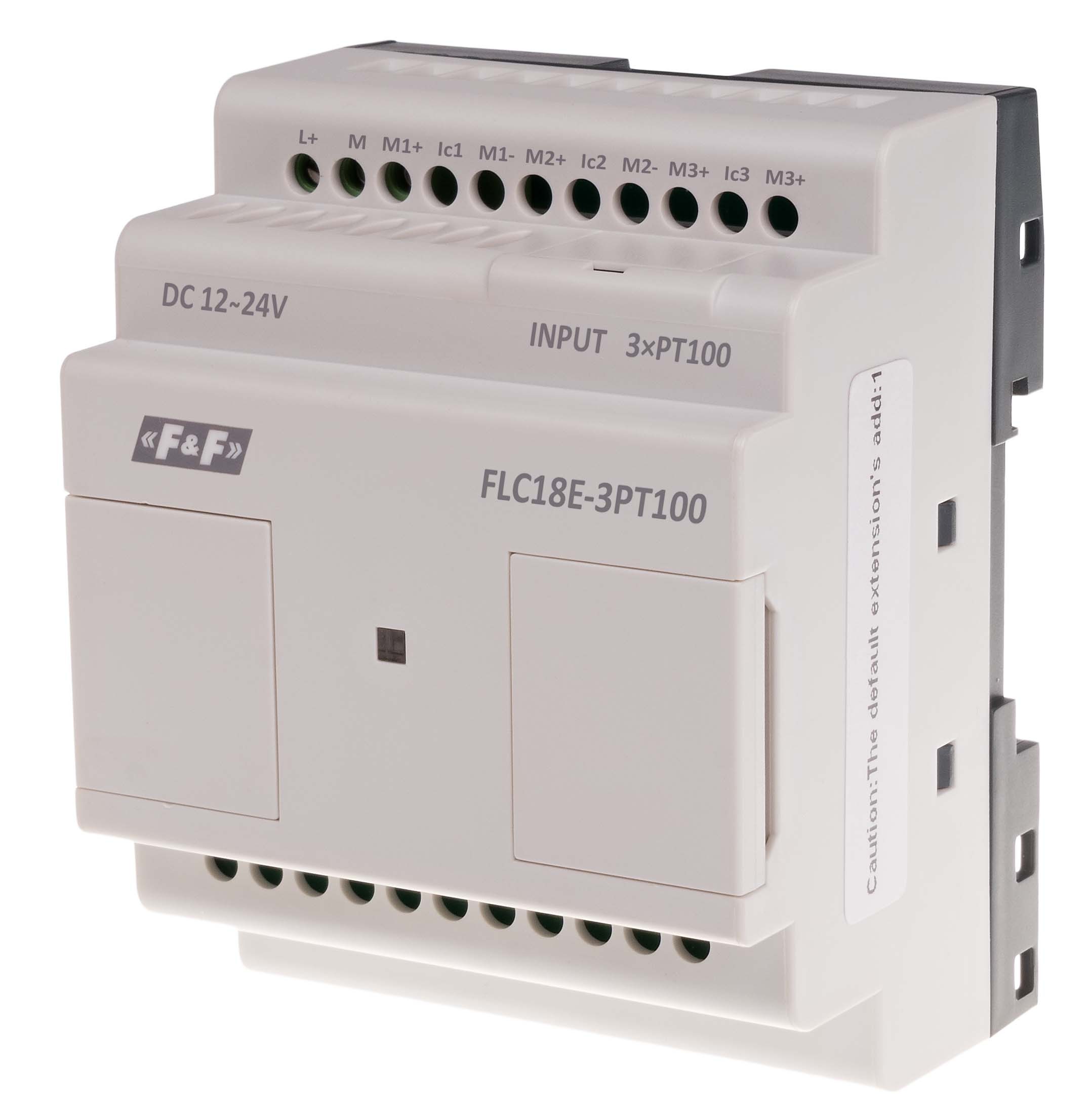 Typ moduł rozszerzeń Napięcie zasilania 12÷24 V DC Ogólna ilość wejść 3 Typ sondy pomiarowej PT100 Podłączenie 2 lub 3 przewodowe Rozdzielczość 12 bit Waga 300 g Współpraca z modułami CPU FLC18-12DI-6R Przyłącze zaciski śrubowe 1,5 mm² Moment dokręcający 0,4 Nm Pobór mocy 1 W Temperatura pracy -20÷55°C Montaż na szynie 35 mm Stopień ochrony IP20