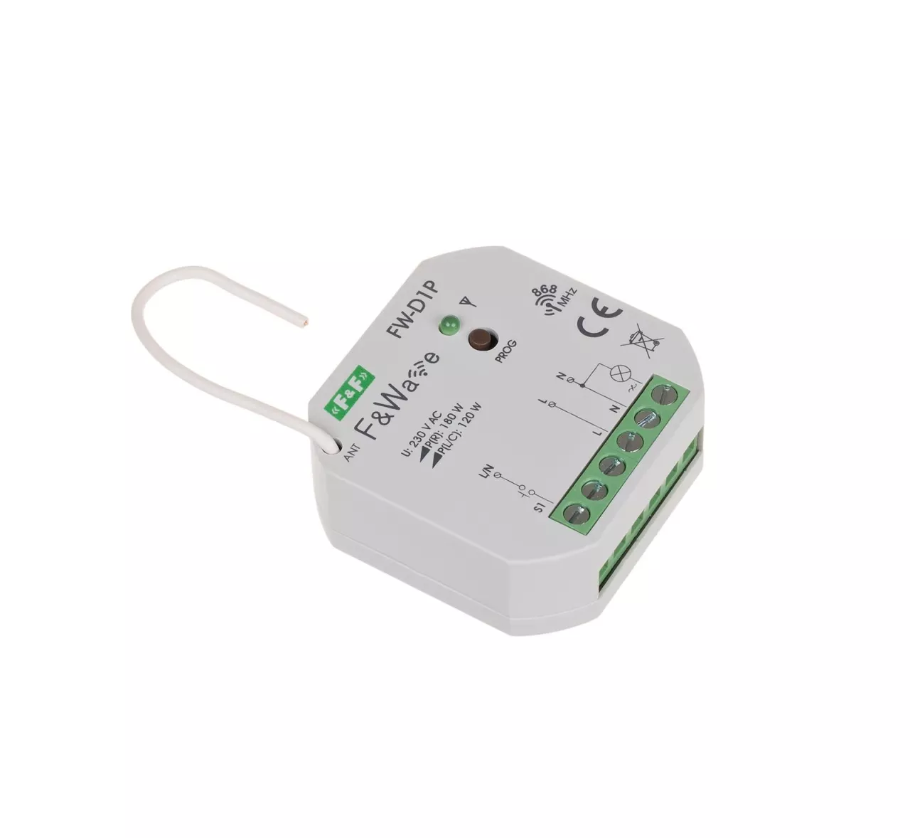 Napięcie zasilania 85÷265 V AC/DC Liczba kanałów 1 Funkcja ściemniacz 230 V Wejścia sterownicze 1 Sygnał sterujący L lub N Element wykonawczy przekaźnik Częstotliwość radia 868 MHz Przeciążalność wyjścia 180 W Przyłącze zaciski śrubowe 2,5 mm² Moment dokręcający 0,4 Nm Pobór mocy czuwanie/praca 0,25 W / 0,4 W Temperatura pracy -25 ÷ 65°C Wymiary 43 mm x 48 mm x 20 mm Montaż w puszce podtynkowej Ø60 Stopień ochrony IP20