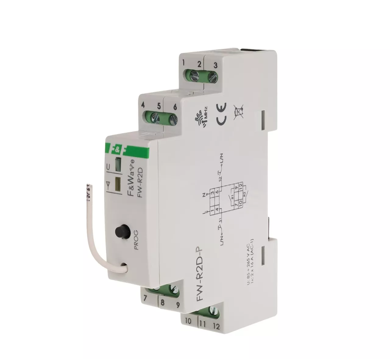 Napięcie zasilania 85÷265 V AC/DC Liczba kanałów 2 Funkcja przekaźnik wielofunkcyjny Wejścia sterownicze 2 Sygnał sterujący L lub N Obciążalność wyjścia (AC-1) 2 x 16 A / 250 V Element wykonawczy przekaźnik Częstotliwość radia 868 MHz Przyłącze zaciski śrubowe 2,5 mm² Moment dokręcający 0,4 Nm Pobór mocy czuwanie/praca 0,25 W / 1 W Temperatura pracy -25 ÷ 65°C Wymiary 1 moduł (18 mm) Montaż na szynie 35 mm Stopień ochrony IP20