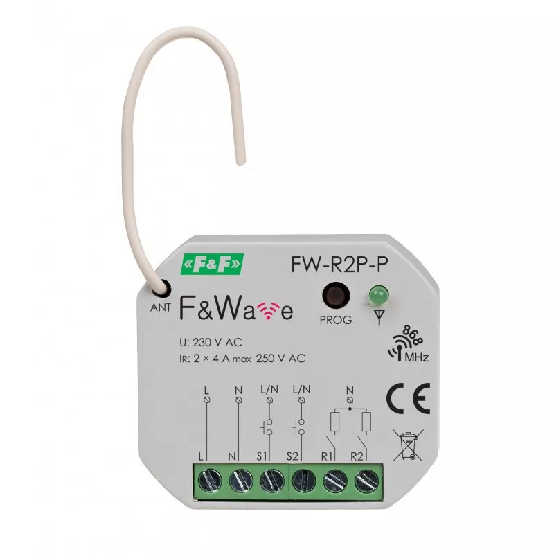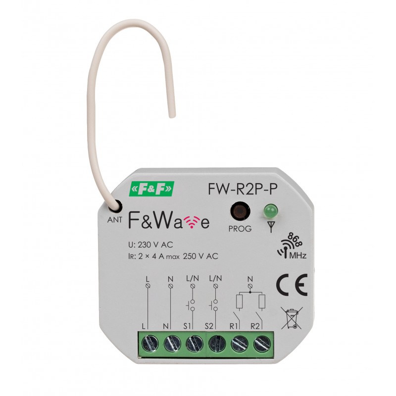 Radiowy podwójny przekaźnik bistabilny do puszki montażowej Ø60 85÷265V AC/DC, multifunkcyjny, do montażu podtynkowego