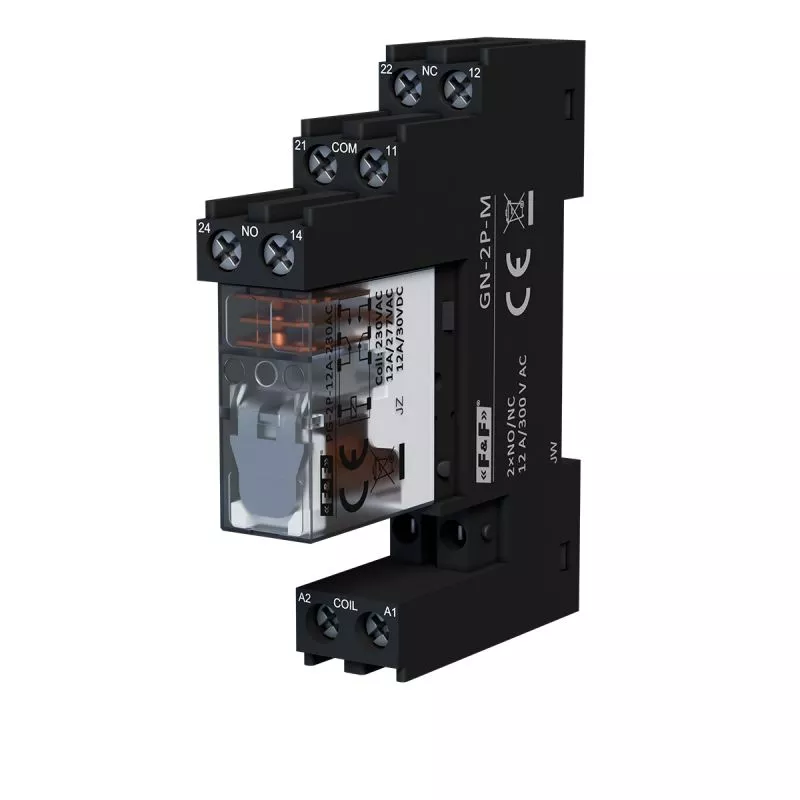 Przekaźnik interfejsowy 2P, zasilanie 230 V AC, 12A, 1S z gniazdem GN-2P-M