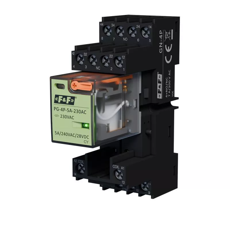 Komplet: gniazdo przekaźnikowe GN-4P + przekaźnik interfejsowy PG-4P-5A-230AC